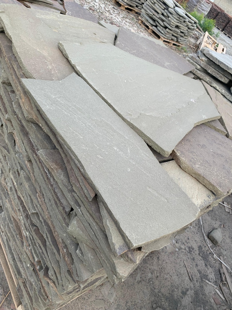 Плитняк песчаник серо-зелёный для облицовки цоколя, отмостки 20-25 мм